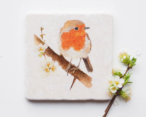 Bild auf Stein "Rotkehlchen mit Zweig"