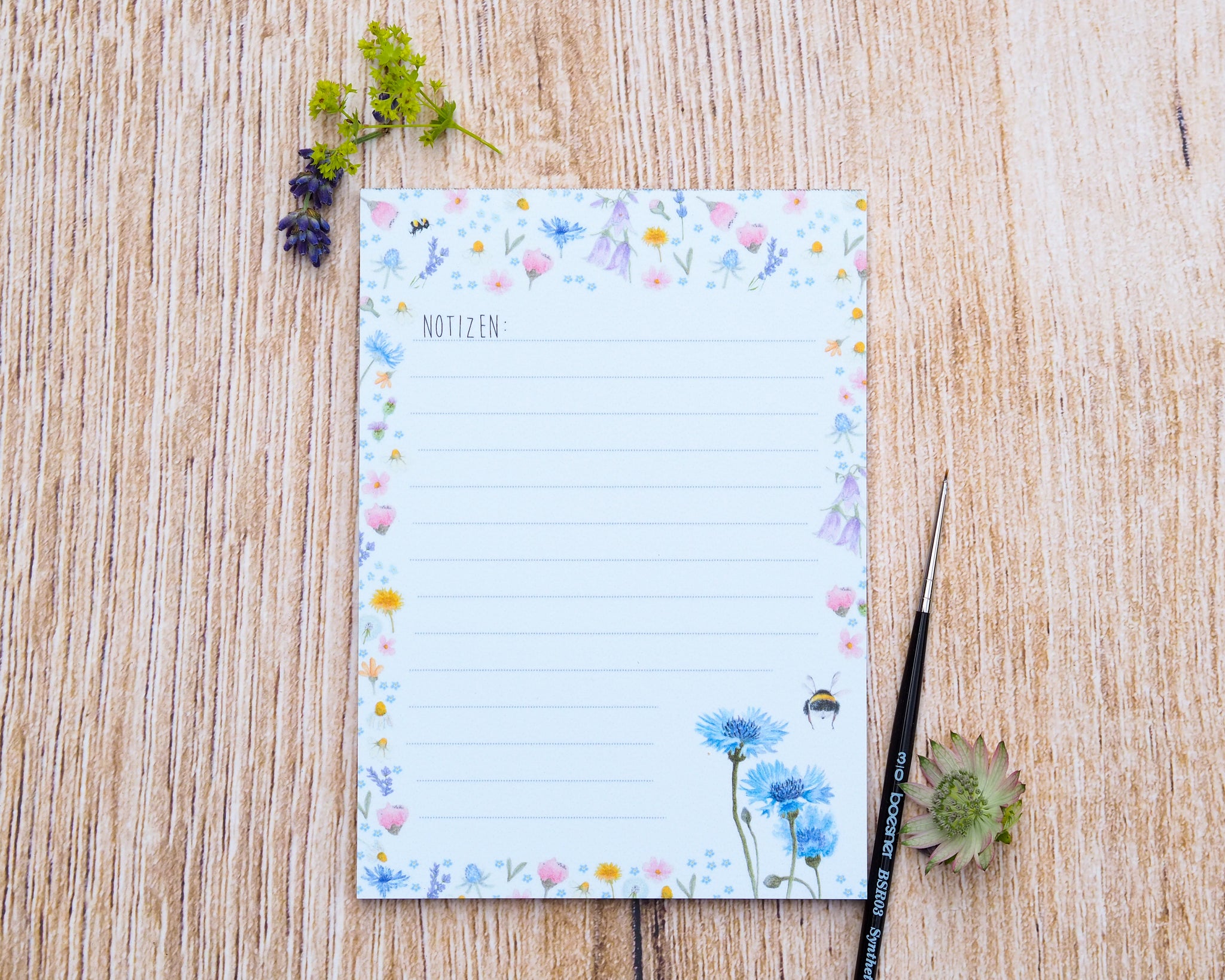 • Laden Sie das Bild in den Galerie-Viewer, Notizblock "Blumenmeer mit Hummel"
