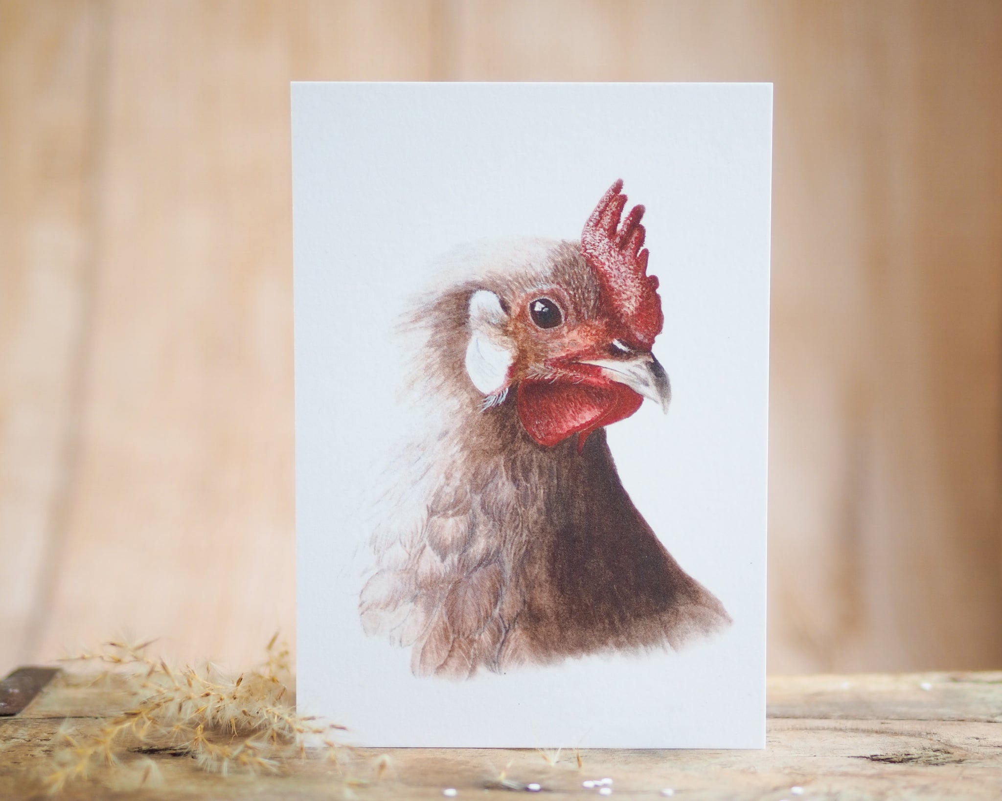 • Laden Sie das Bild in den Galerie-Viewer, Kunstdruck / gedruckte Karte mit Huhn auf feinstem Cotton-Papier