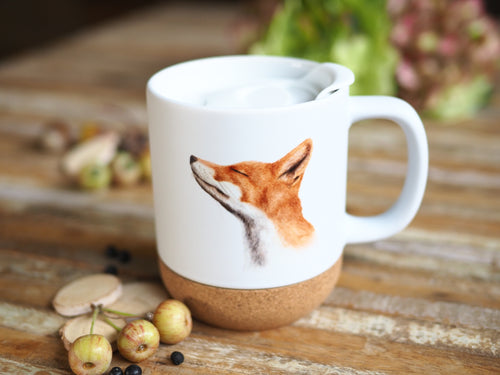 Große Tasse mit Korkboden "Schnupperfuchs"