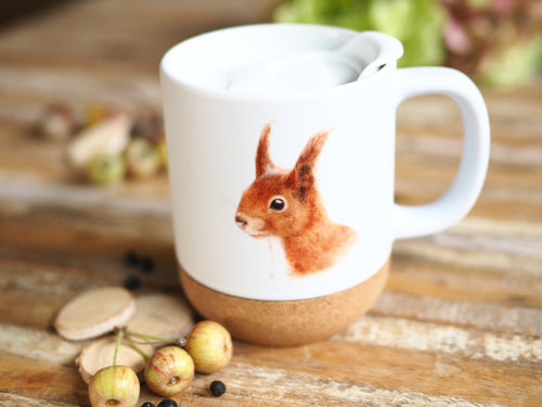Große Tasse mit Korkboden "Quirliges Eichhörnchen"