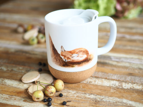 Große Tasse mit Korkboden "Schlafender Fuchs"