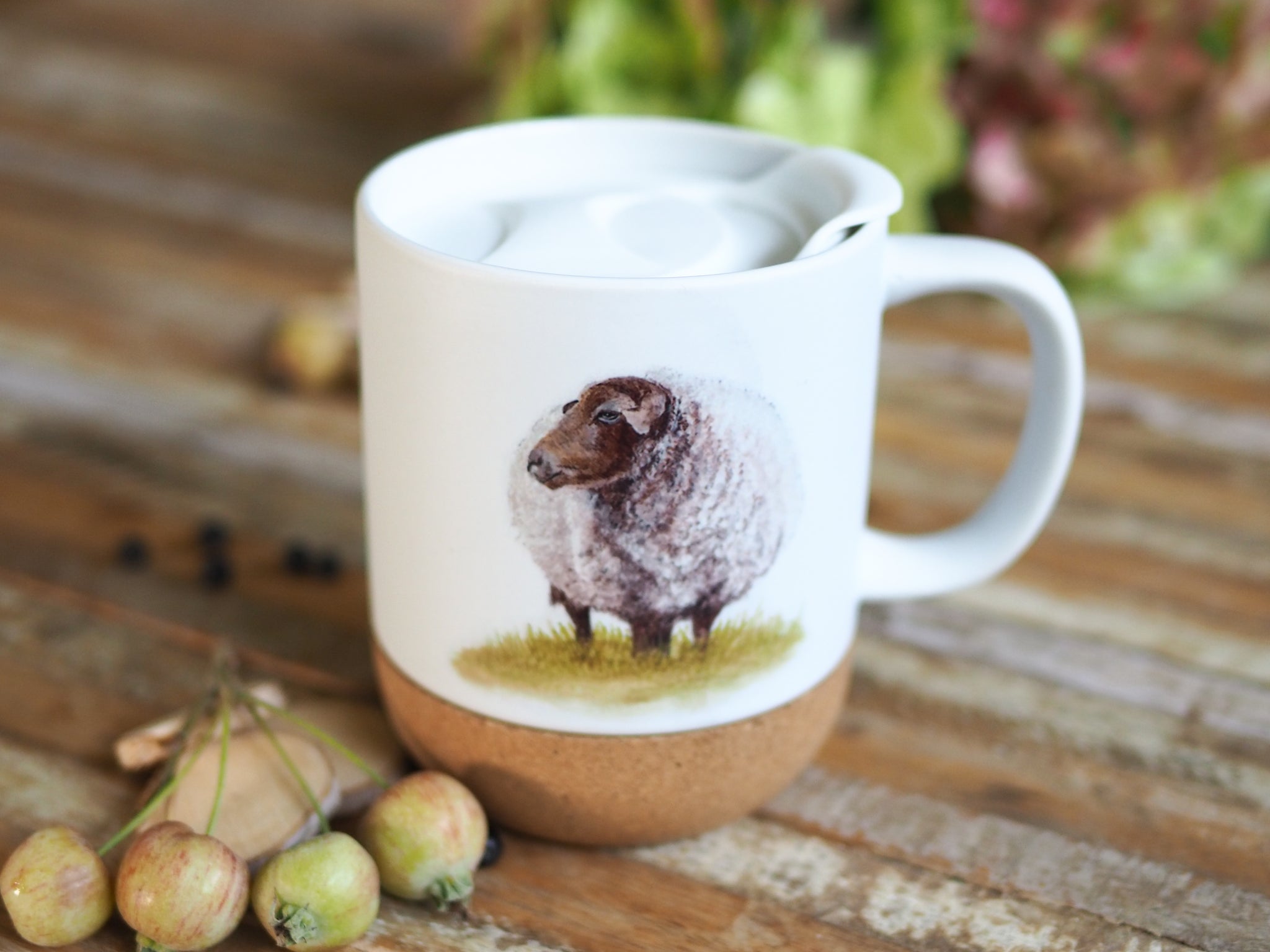 Große Tasse mit Korkboden "Gemütliches Schaf"