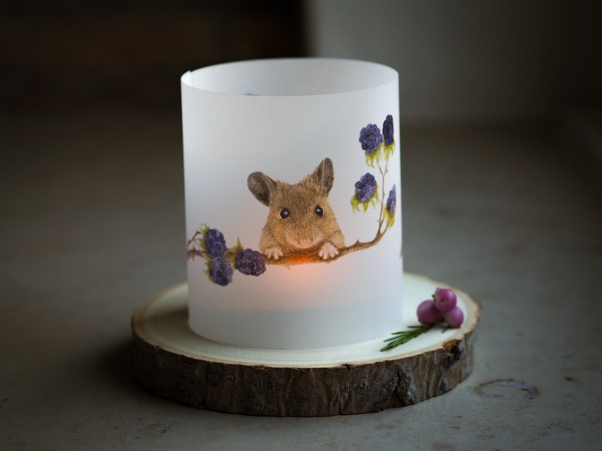 Windlicht Tischdeko "Maus mit Brombeeren"