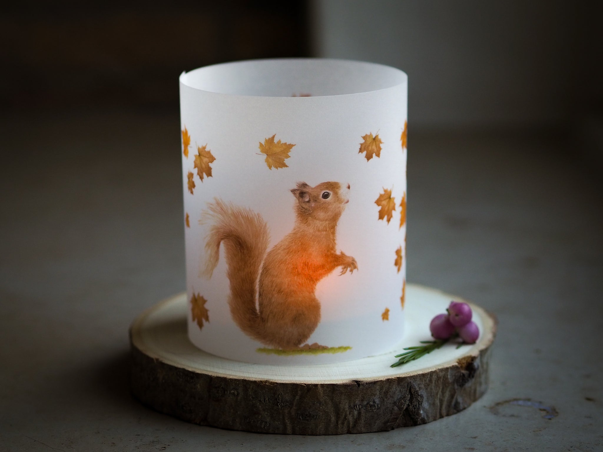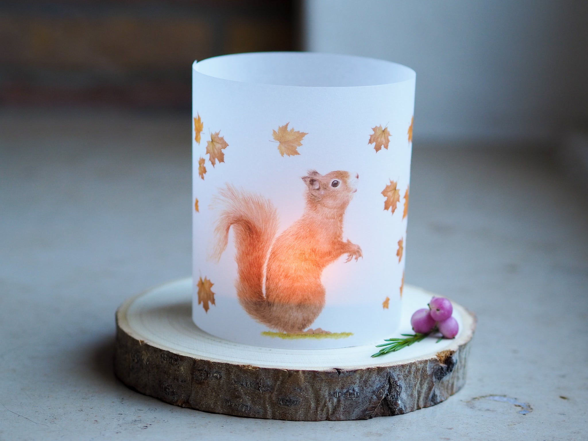 Zartes Windlicht aus Papier mit Eichhörnchen, stimmungsvolles Licht für Zuhause