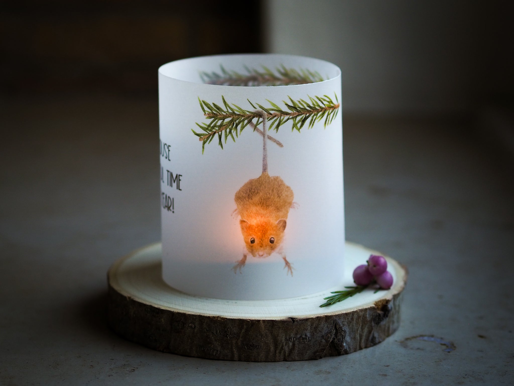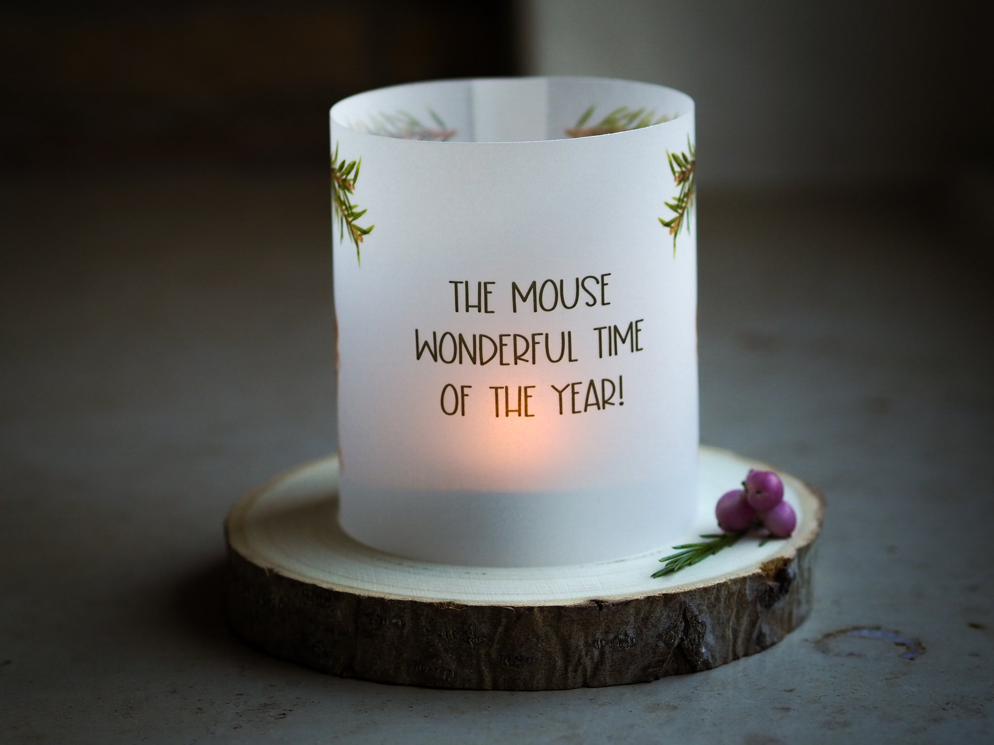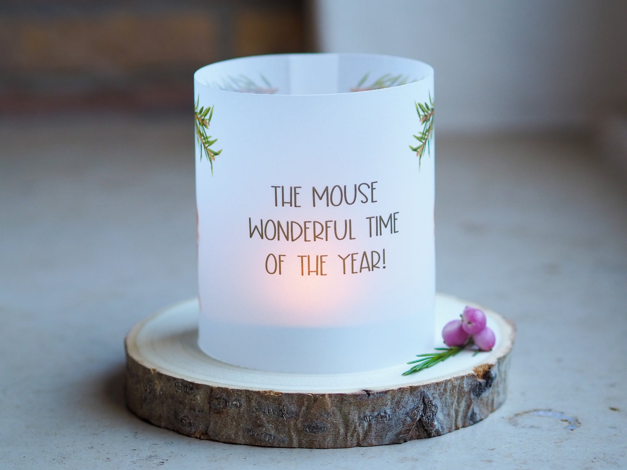 Windlicht Tischdeko "Freche Weihnachtsmaus"