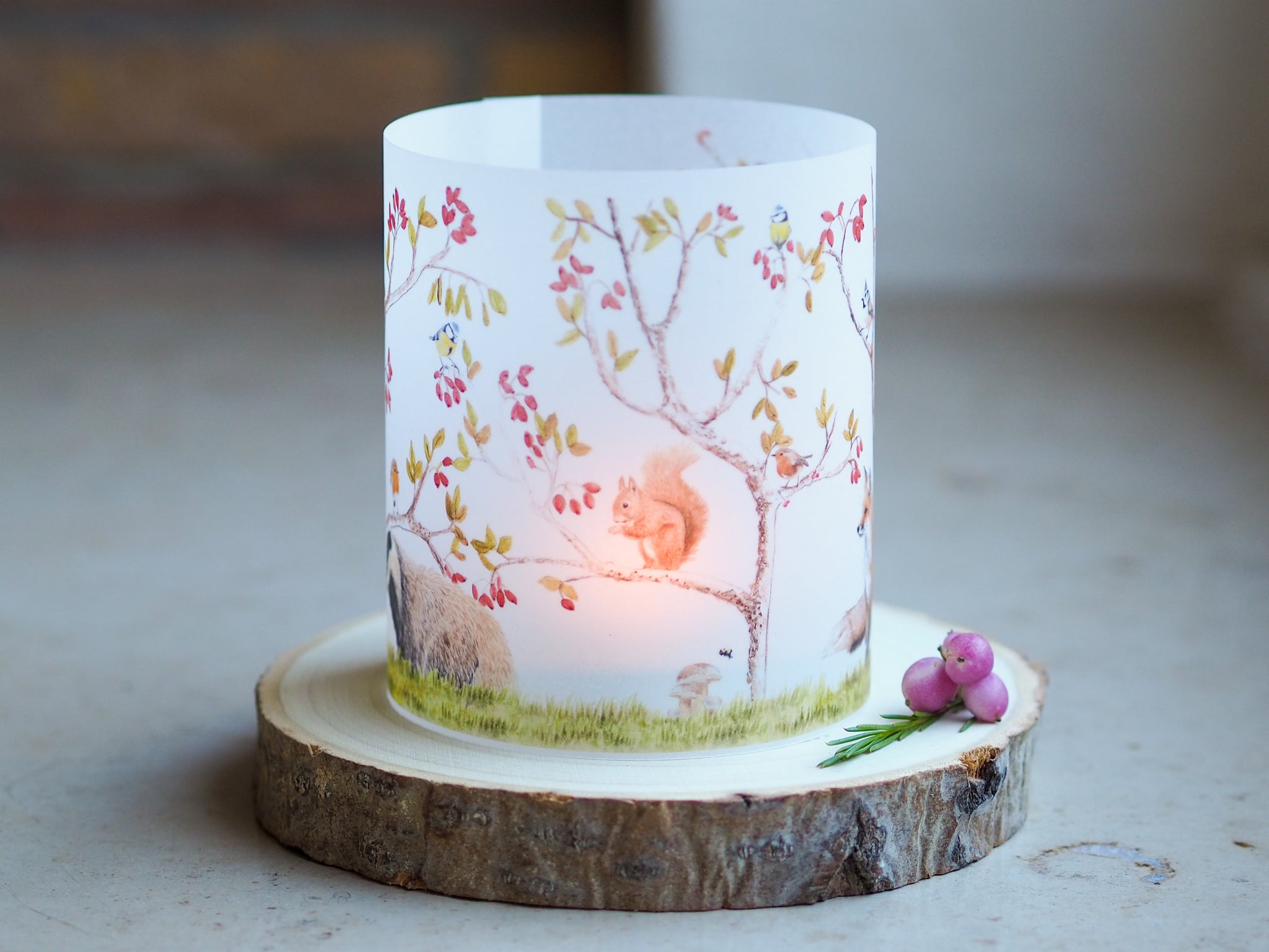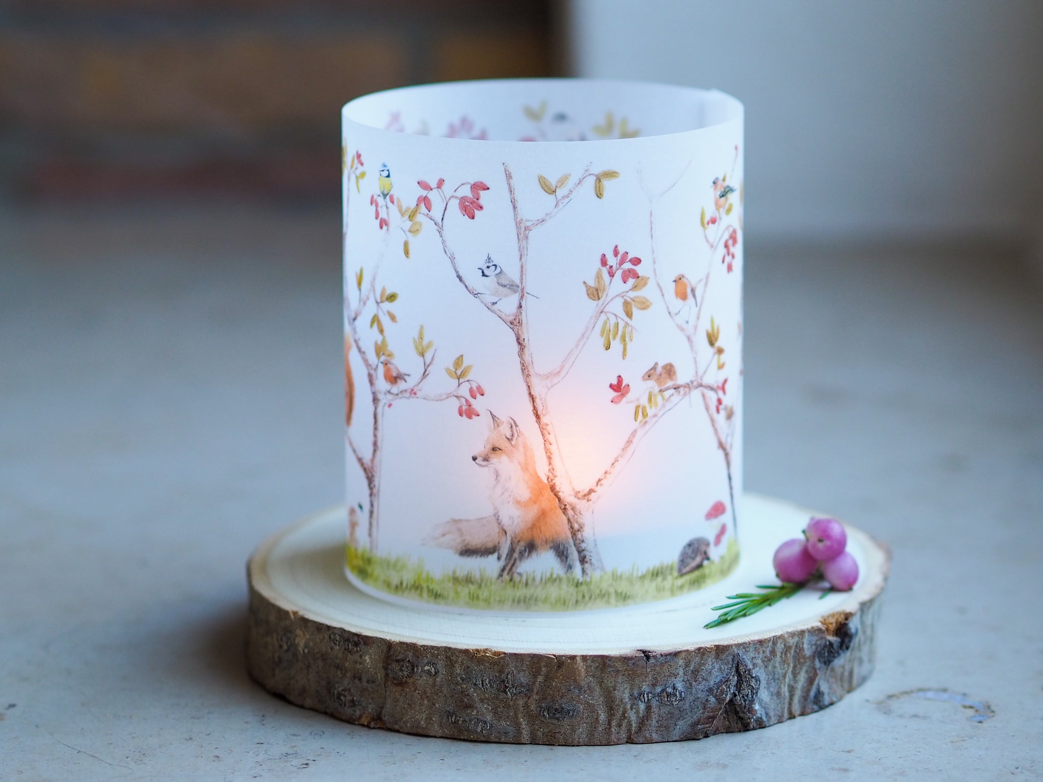 Windlicht Tischdeko "Tiere im Herbstwald"