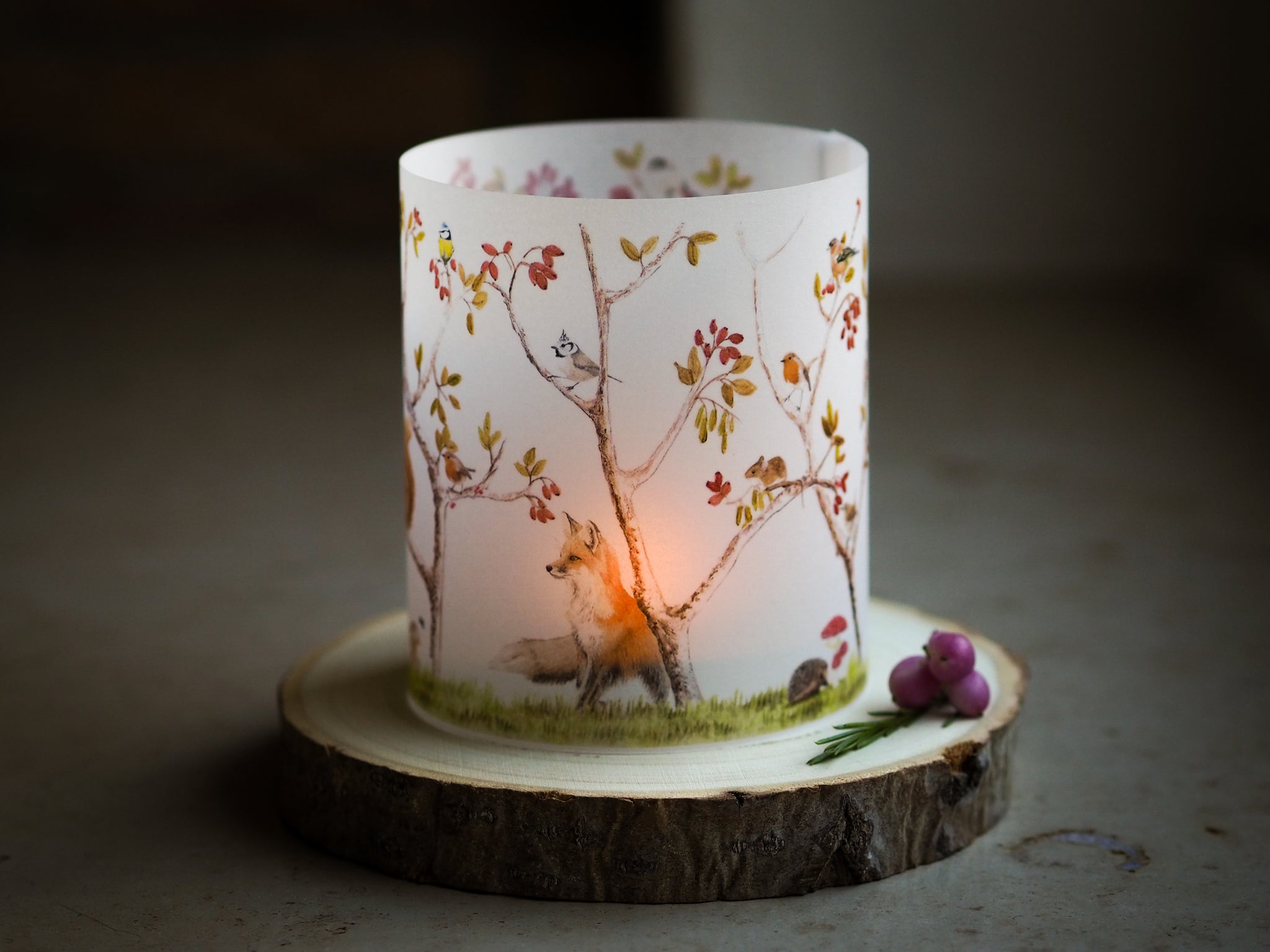 • Laden Sie das Bild in den Galerie-Viewer, Windlicht Tischdeko "Tiere im Herbstwald"